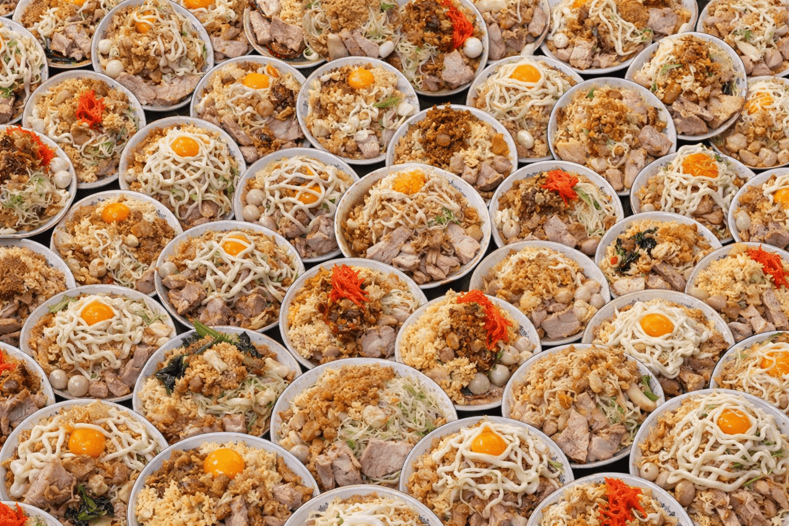 - 野菜やニンニクが山盛りに載っている