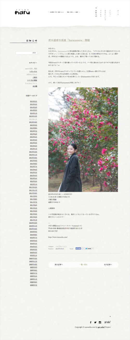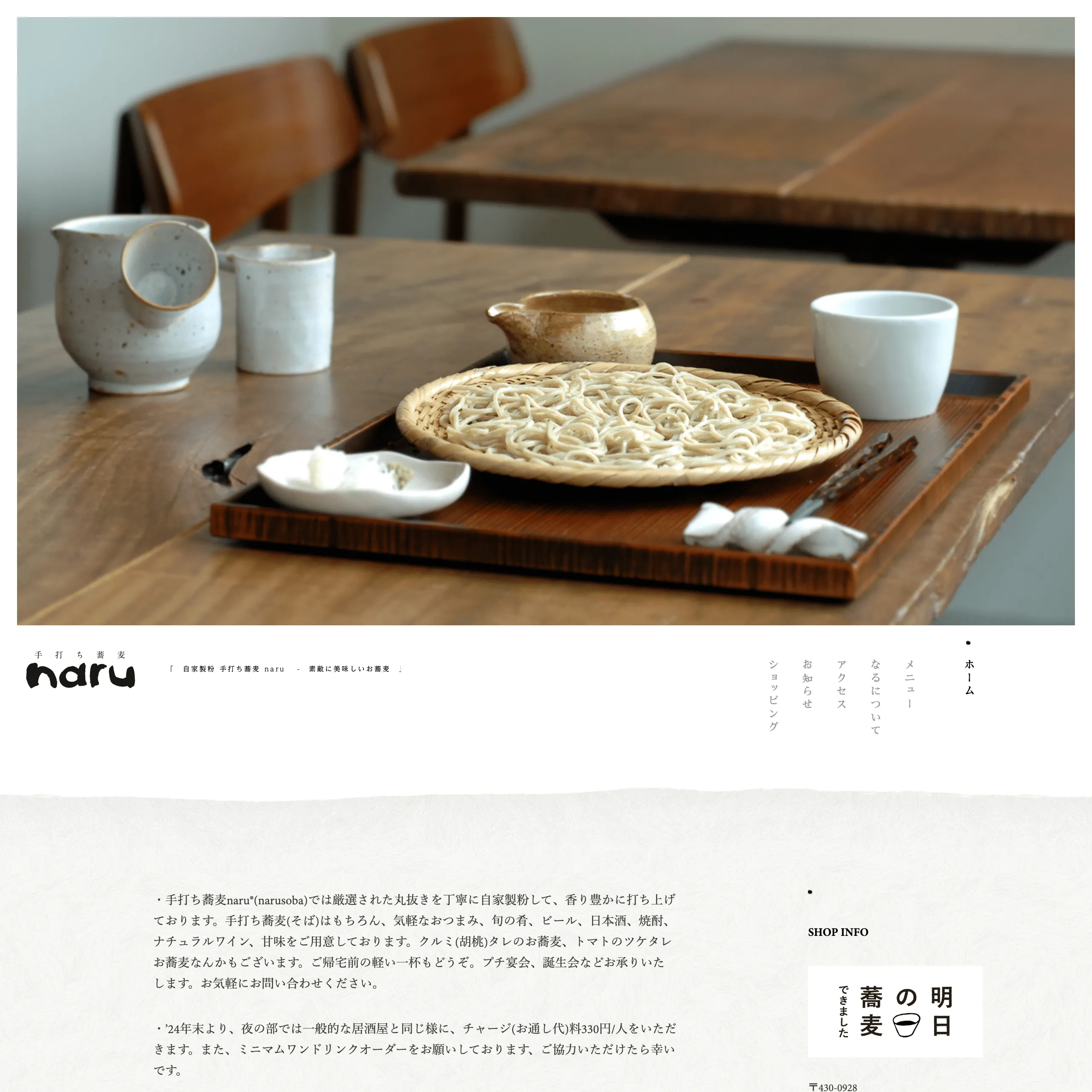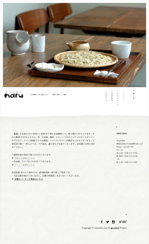 浜松の美味しいお蕎麦屋さん『手打ち蕎麦 naru』のウェブサイトをリニューアルいたしました。