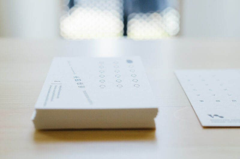 印刷業界ど初心者であるわたくしが、なんか知っていたのが活版印刷である。単なるぺらっこい名刺にしたくなくて、印刷屋さんに教わりながら一生懸命デザインした。(ちなみに最初の100枚は失敗している)もう紙の名前を忘れてしまったが、喫茶店のコースターと同じ紙に両面活版印刷してつくった。